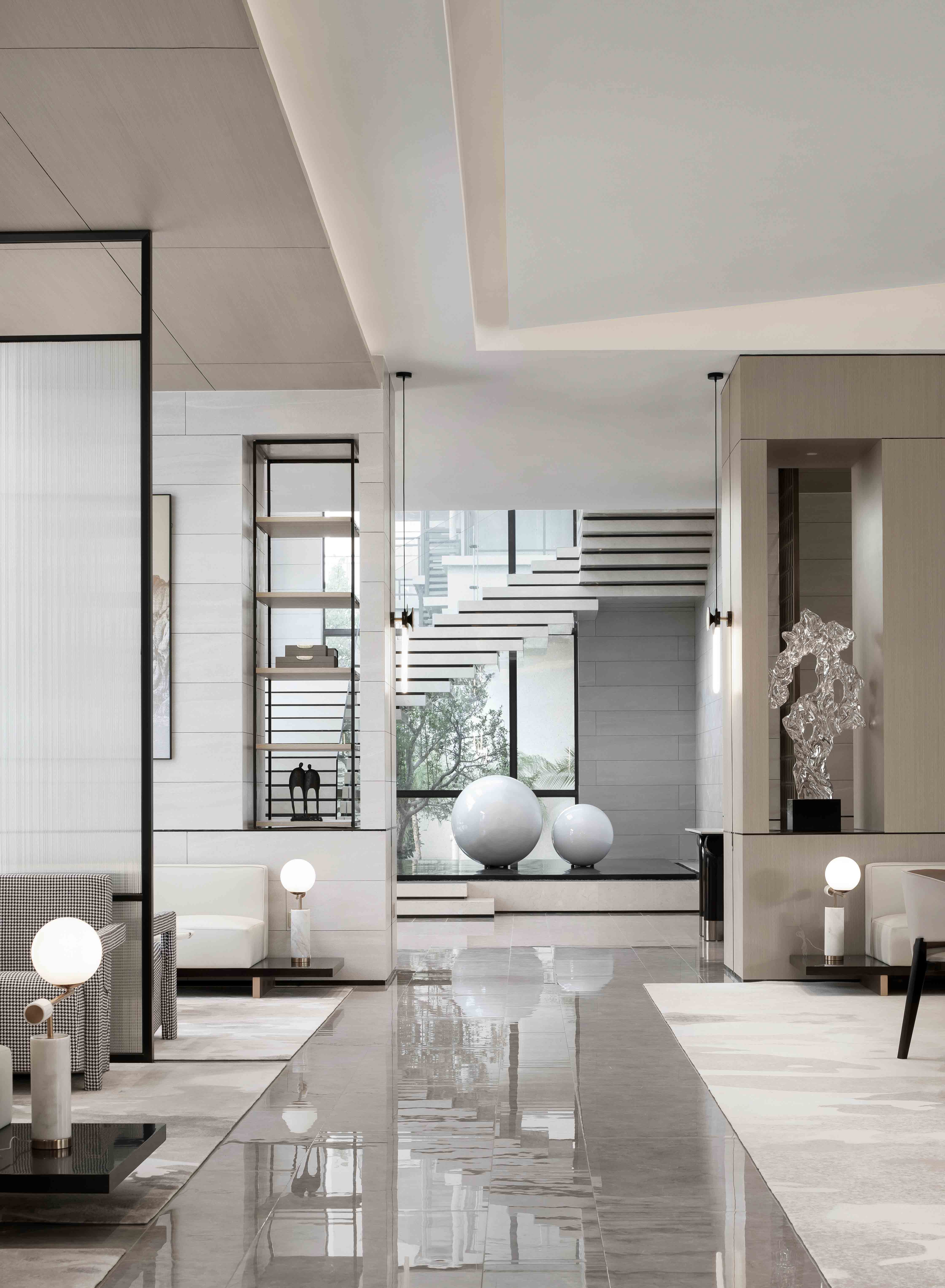 空间洗练不加修饰,渲染出大理石温润如玉的质地,