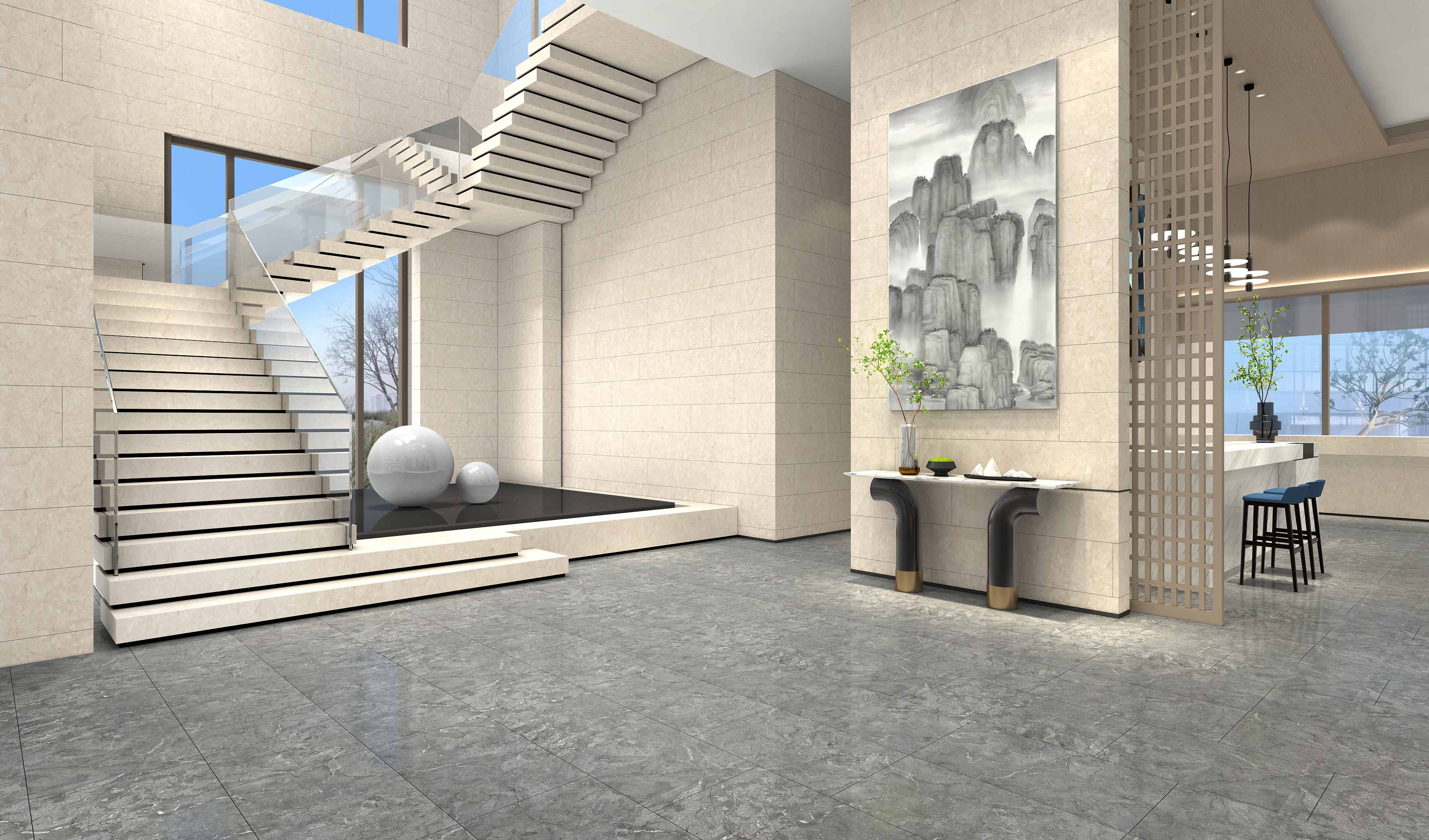 随着空间的节奏舒缓,石材以利落的线条划分棱角,目光所及,素色如锦。