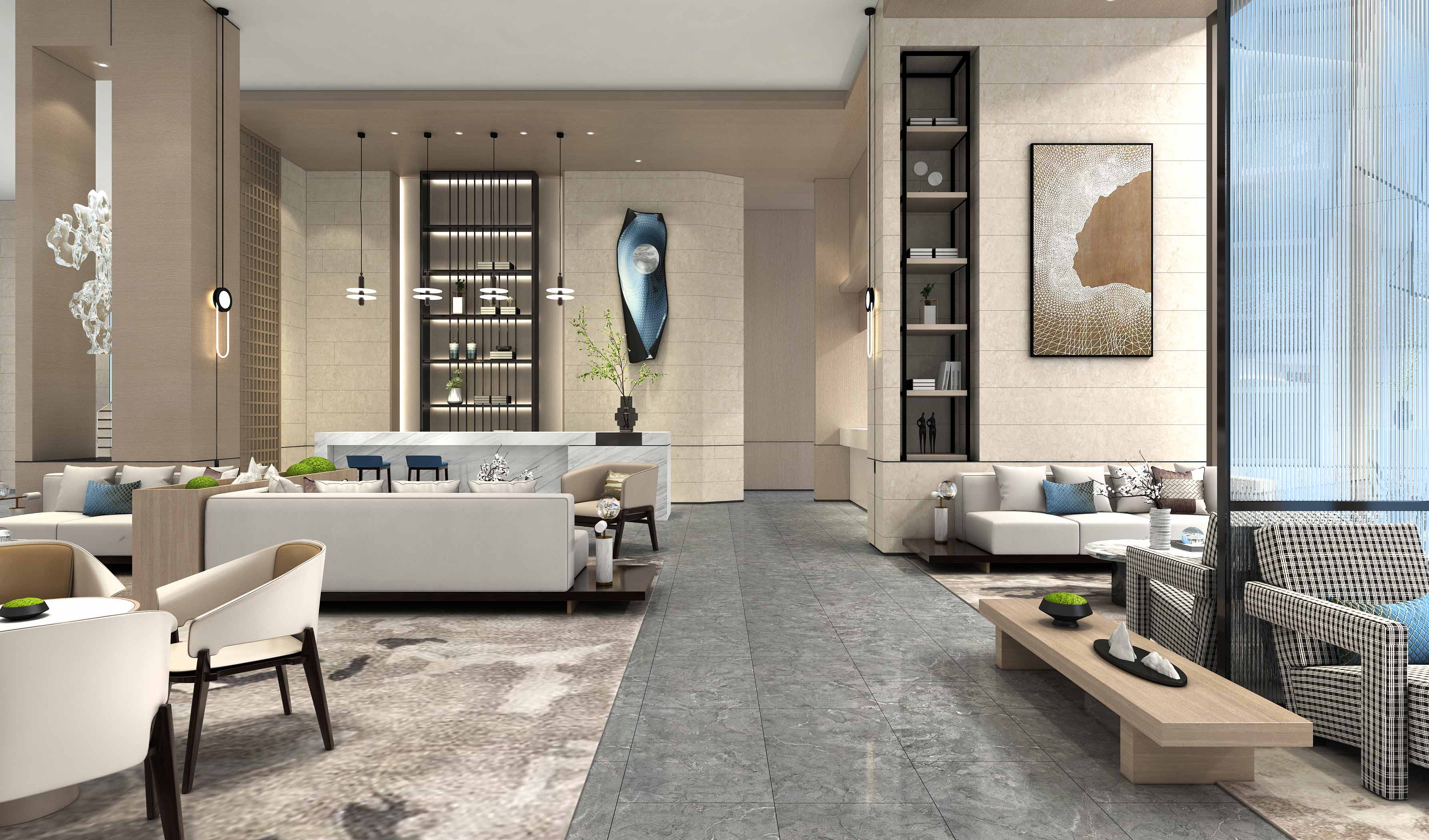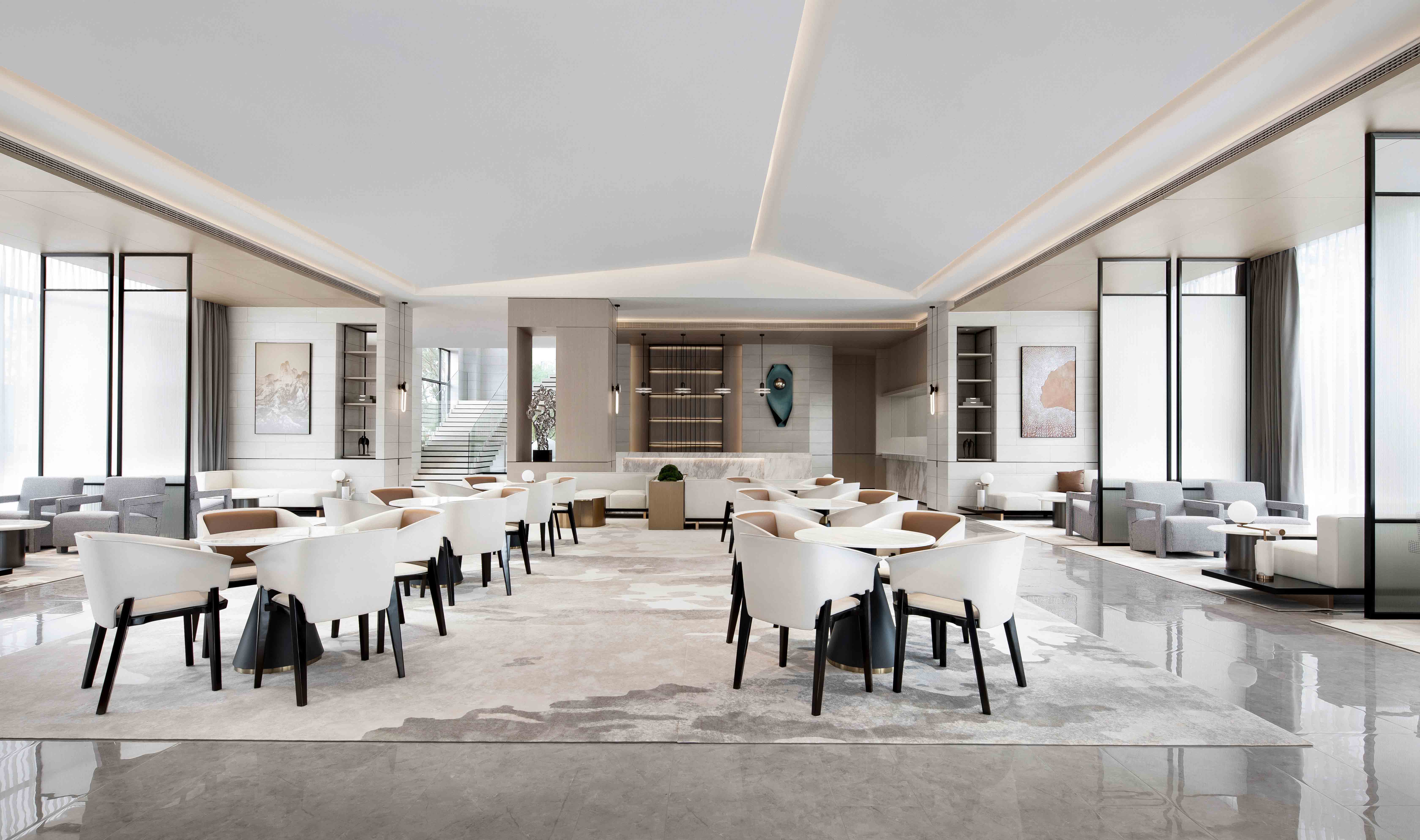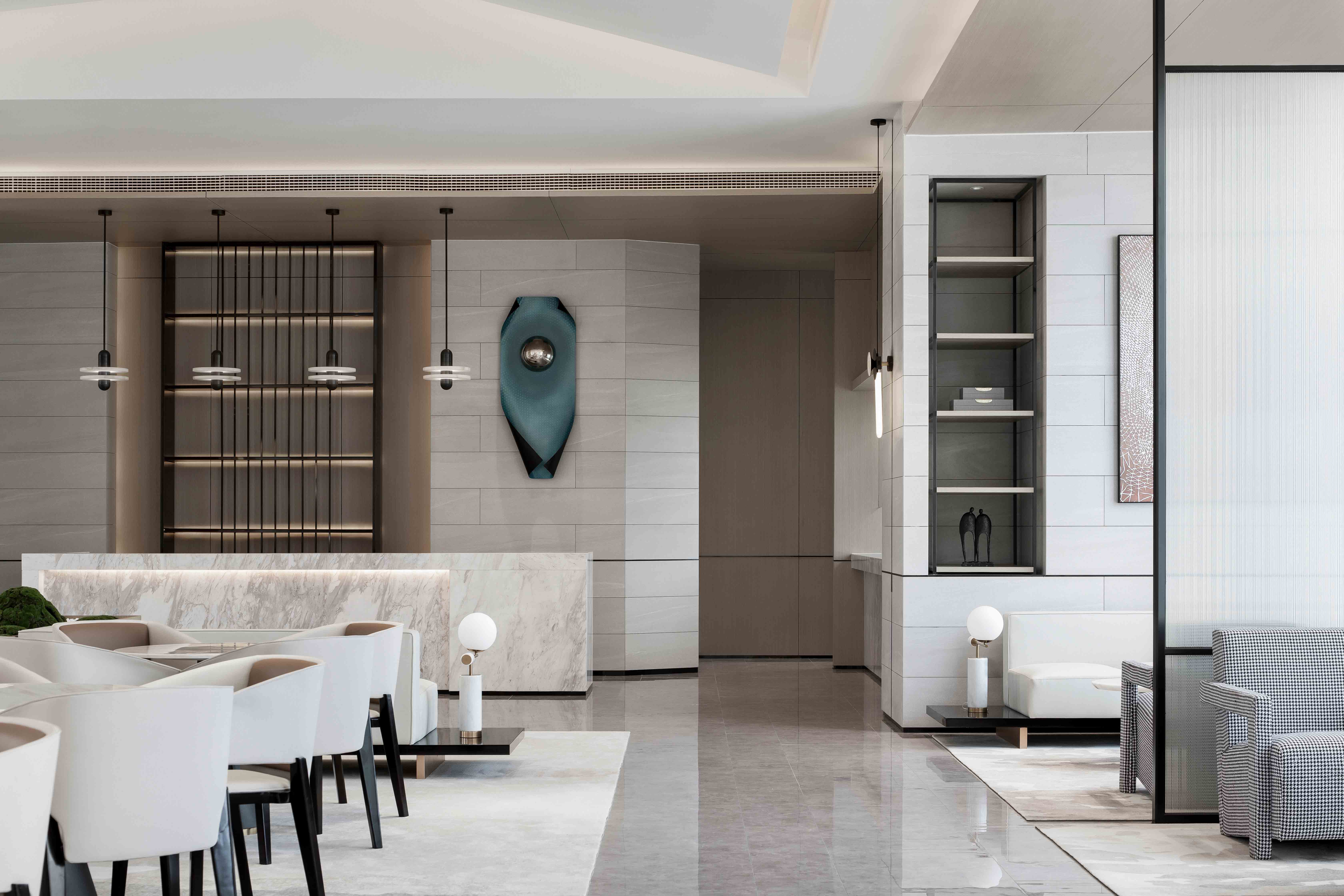 洽谈区天花的坡面将不平衡动态观感极致呈现,以现代方式重构传统秩序美。