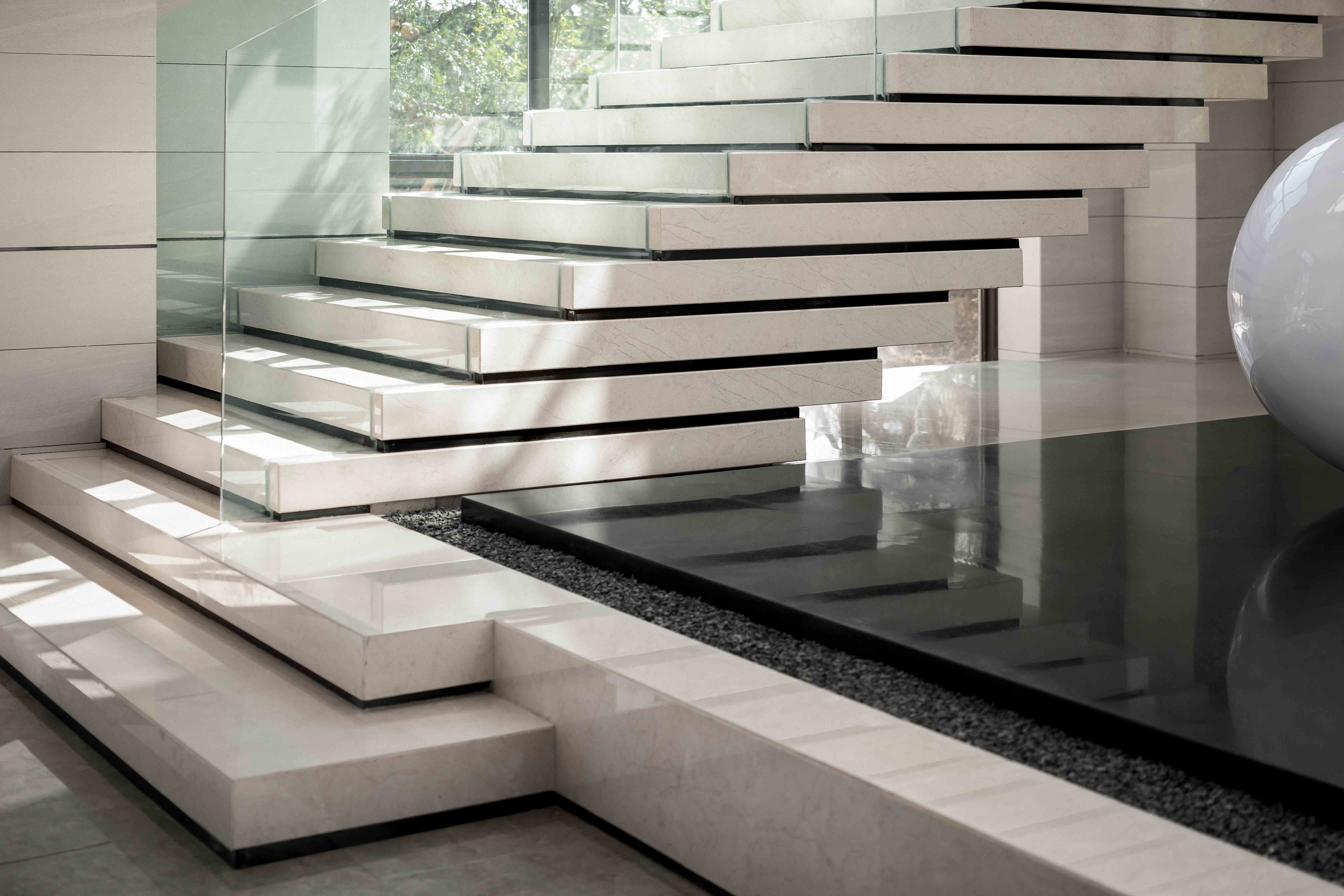 底部使用光泽透亮的黑色材质定格,阶梯得以随性流动、飞驰。